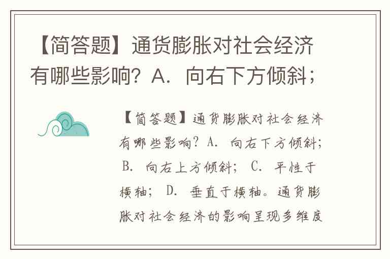 【简答题】通货膨胀对社会经济有哪些影响?A.向右下方倾斜; B.向右上方倾斜; C.平性于横轴; D.垂直于横轴。