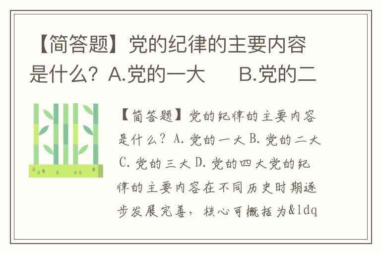 【简答题】党的纪律的主要内容是什么?A.党的一大 B.党的二大 C.党的三大 D.党的四大