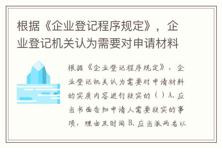 根据《企业登记程序规定》,企业登记机关对申请材料实质内容进行核实时,需遵循多项法定程序。正确选项为B、C、D,具体依据如下: