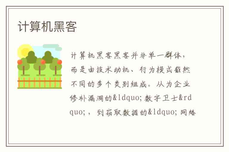 黑客并非单一群体,而是由技术动机、行为模式截然不同的多个类别组成。从为企业修补漏洞的“数字卫士”,到窃取数据的“网络间谍”,他们的技术能力与伦理立场共同塑造了网络安全的攻防战场。理解黑客的分类、攻击手段与防御策略,是构建安全意识的第一步。