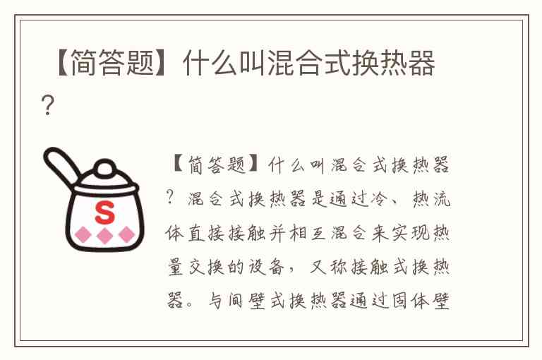混合式换热器是通过冷、热流体直接接触并相互混合来实现热量交换的设备,又称接触式换热器。与间壁式换热器通过固体壁面间接传热不同,其核心特征是两种流体在换热过程中直接接触,通过分子碰撞传递热量,同时可能伴随质量交换。这种传热方式因消除了间壁热阻和污垢热阻,在接触良好时具有极高的传热效率,结构也更为简单。