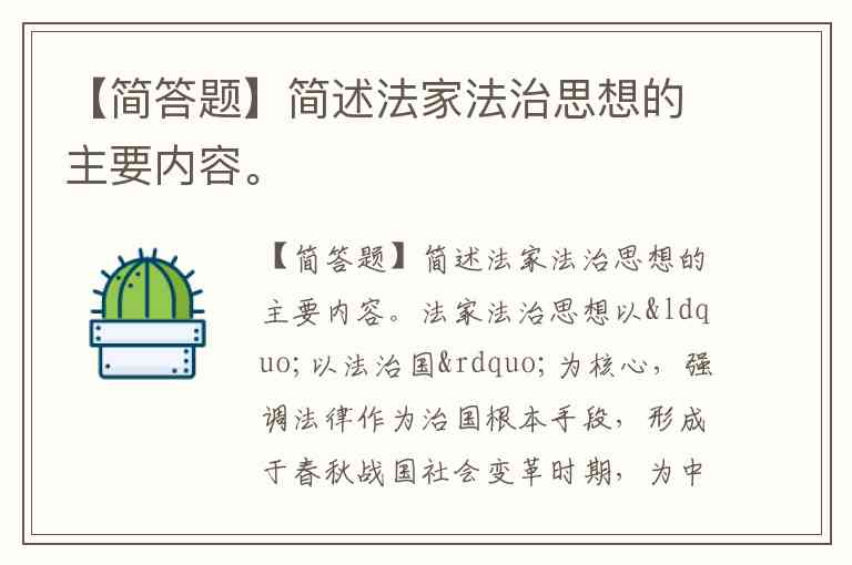 法家法治思想以“以法治国”为核心,强调法律作为治国根本手段,形成于春秋战国社会变革时期,为中央集权国家提供理论支撑。其内容涵盖法律本质、作用、实施原则及“法、术、势”结合的统治策略,既包含朴素法治理念,也存在服务专制的局限。