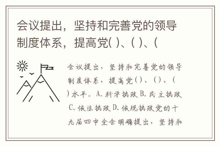 会议提出,坚持和完善党的领导制度体系,提高党( )、( )、( )水平。A.科学执政 B.民主执政 C.依法执政 D.依规执政