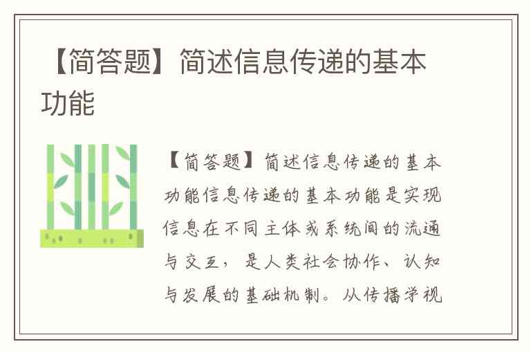 【简答题】简述信息传递的基本功能