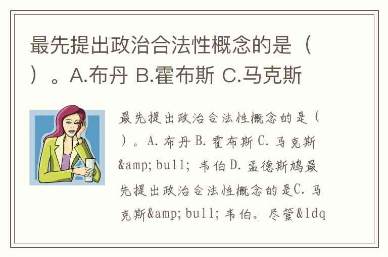 最先提出政治合法性概念的是()。A.布丹 B.霍布斯 C.马克斯• 韦伯 D.孟德斯鸠