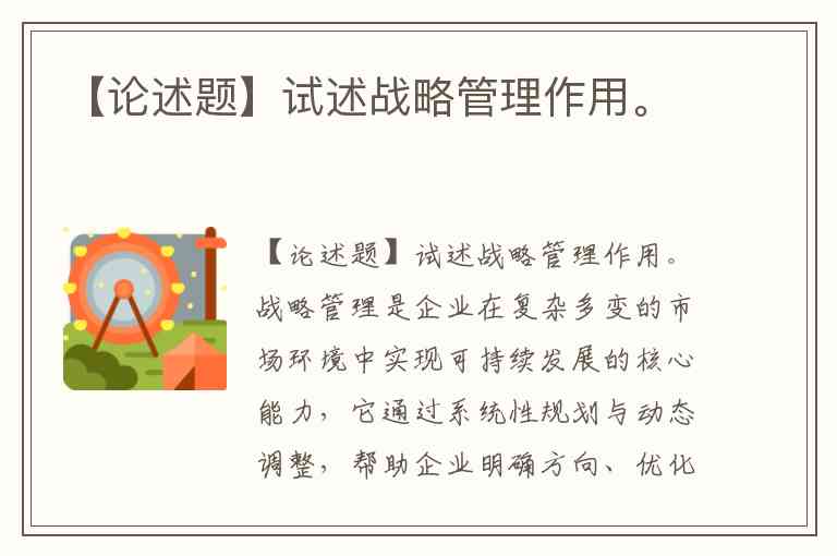 战略管理是企业在复杂多变的市场环境中实现可持续发展的核心能力,它通过系统性规划与动态调整,帮助企业明确方向、优化资源配置、应对风险挑战,最终构建长期竞争优势。从H.伊戈尔·安索夫提出的“广义战略管理”到乔治·斯坦纳的“狭义战略管理”,这一概念始终围绕环境、资源与目标的动态平衡展开,强调从全局视角解决“往哪走、怎么走、谁来走”的根本问题。