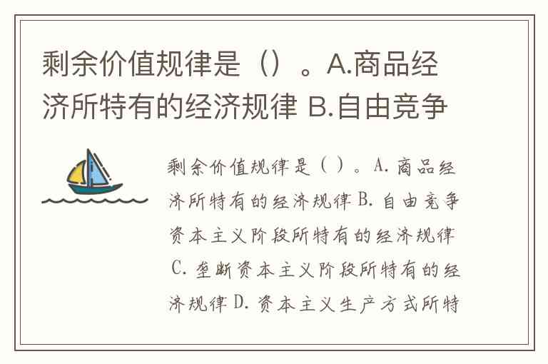 剩余价值规律是()。A.商品经济所特有的经济规律 B.自由竞争资本主义阶段所特有的经济规律 C.垄断资本主义阶段所特有的经济规律 D.资本主义生产方式所特有的经济规律