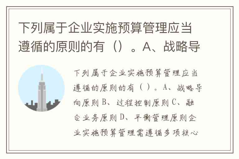 下列属于企业实施预算管理应当遵循的原则的有()。A、战略导向原则 B、过程控制原则 C、融合业务原则 D、平衡管理原则