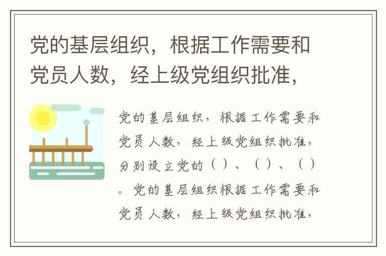 党的基层组织,根据工作需要和党员人数,经上级党组织批准,分别设立党的()、()、()。