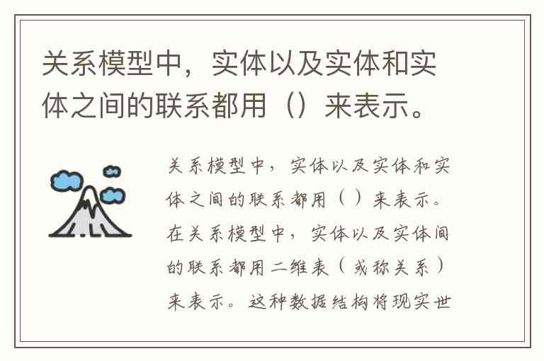在关系模型中,实体以及实体间的联系都用二维表(或称关系)来表示。这种数据结构将现实世界中的对象及其关联抽象为行列交织的表格形式,其中每行代表一个实体实例,每列对应实体的属性或联系的特征。