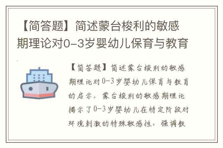 【简答题】简述蒙台梭利的敏感期理论对0-3岁婴幼儿保育与教育的启示。