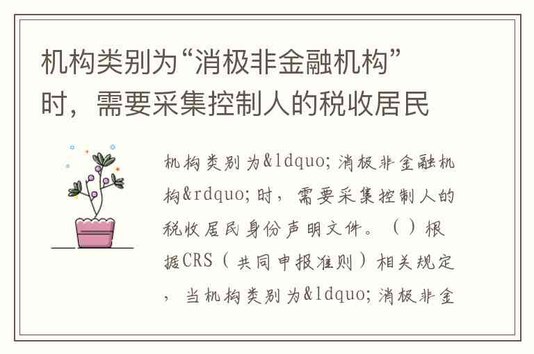 机构类别为“消极非金融机构”时,需要采集控制人的税收居民身份声明文件。()