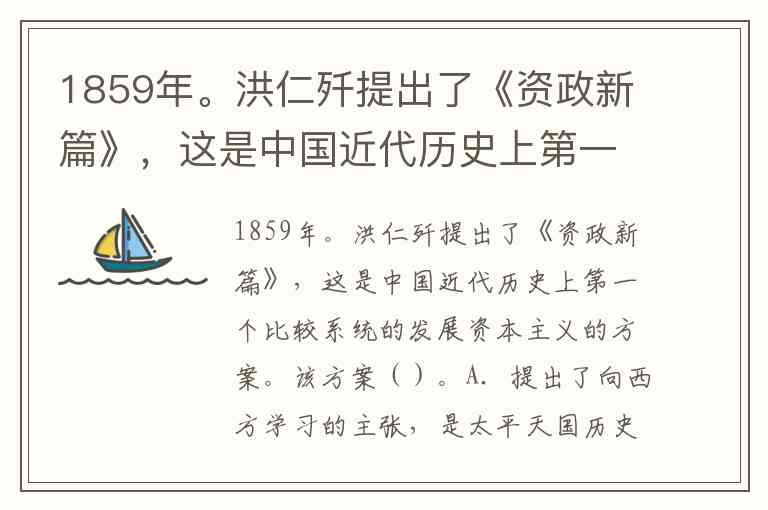 1859年。洪仁歼提出了《资政新篇》,这是中国近代历史上第一个比较系统的发展资本主义的方案。该方案()。A.提出了向西方学习的主张,是太平天国历史中一个光辉的亮点 B.是太平天国农民战争鲜明的不同于历史上的其他农民战争的新的历史特点 C.是农民战争实践的直接产物,一定程度上反映了农民迫切的土地要求 D.提出了破除陈规陋俗、兴办学校、“与番人并雄”、严禁鸦片输入等主张