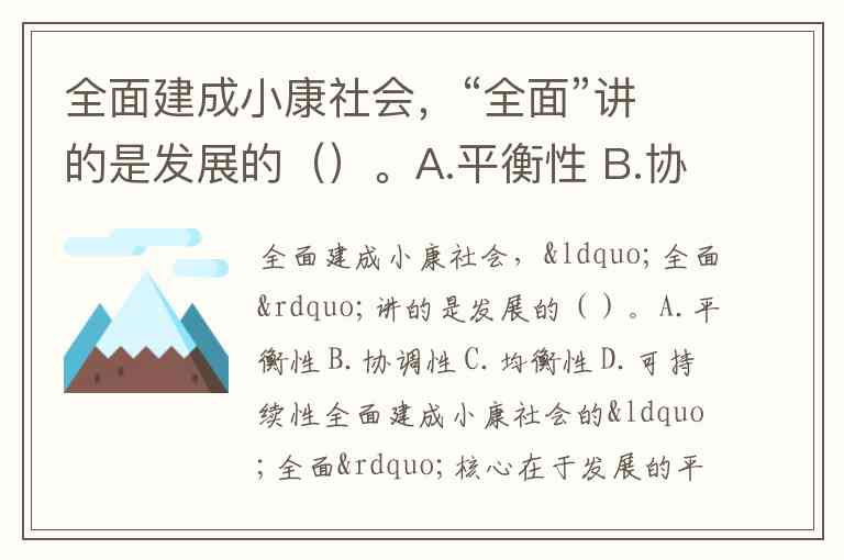全面建成小康社会,“全面”讲的是发展的()。A.平衡性 B.协调性 C.均衡性 D.可持续性