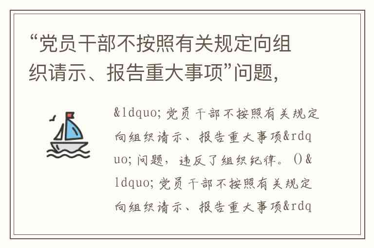 “党员干部不按照有关规定向组织请示、报告重大事项”问题,违反的是政治纪律,而非组织纪律。这一行为在《中国共产党纪律处分条例》中被明确列为第六十一条,属于“对直接责任者和领导责任者,情节较重的,给予警告或者严重警告处分;情节严重的,给予撤销党内职务或者留党察看处分”的情形。