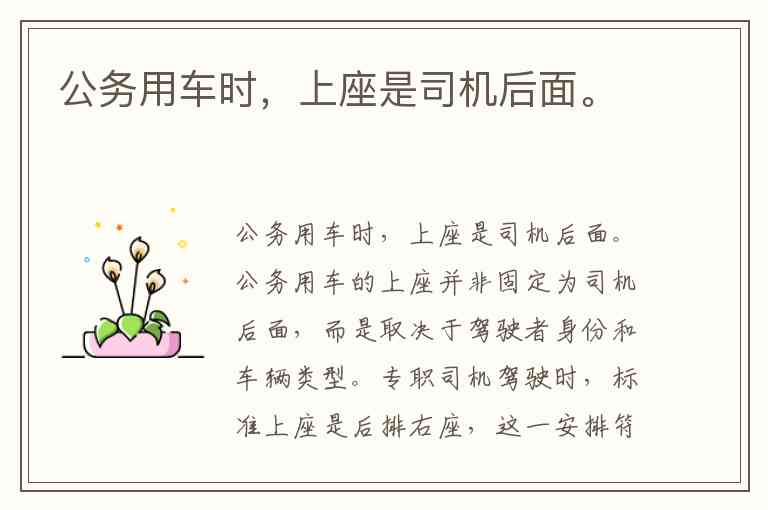 公务用车时,上座是司机后面。