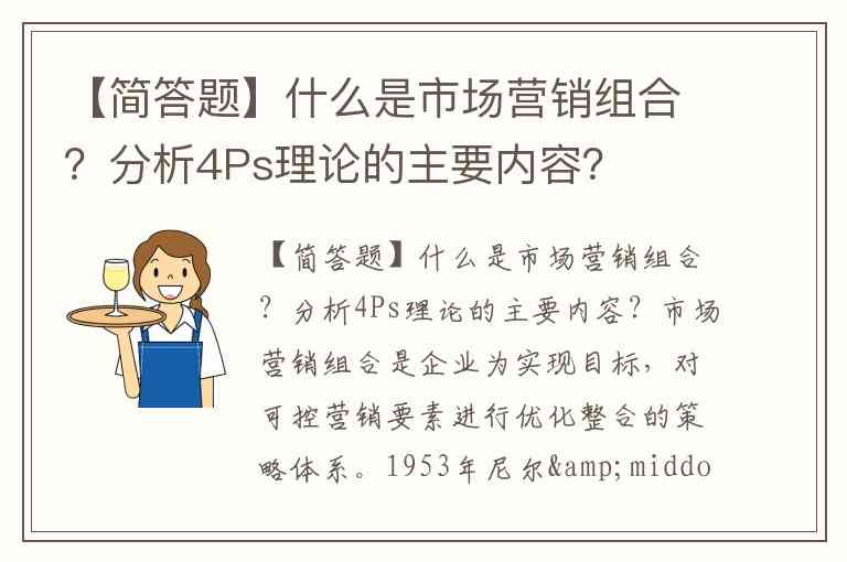 【简答题】什么是市场营销组合?分析4Ps理论的主要内容?