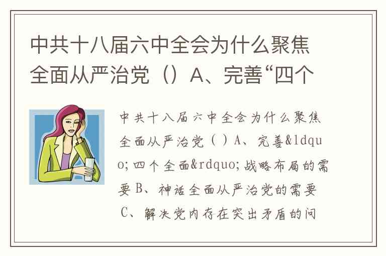 中共十八届六中全会为什么聚焦全面从严治党()A、完善“四个全面”战略布局的需要 B、神话全面从严治党的需要 C、解决党内存在突出矛盾的问题的需要 D、以上都对