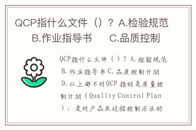 QCP指什么文件()?A.检验规范 B.作业指导书 C.品质控制计划 D.以上都不对