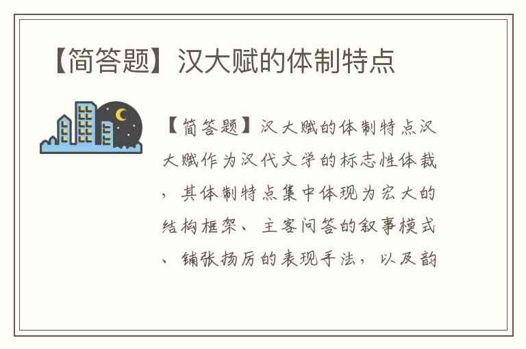 汉大赋作为汉代文学的标志性体裁,其体制特点集中体现为宏大的结构框架、主客问答的叙事模式、铺张扬厉的表现手法,以及韵散结合的语言形态。这种体制既服务于“润色鸿业”的时代需求,也形成了“劝百讽一”的独特表达范式。