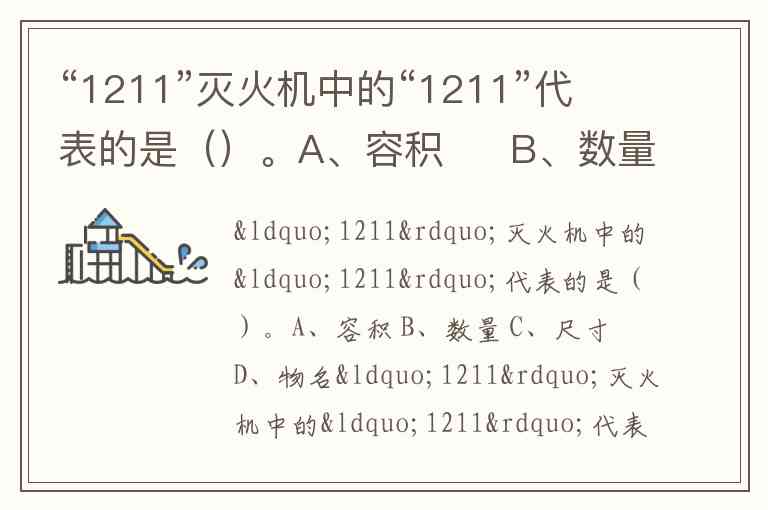 “1211”灭火机中的“1211”代表的是()。A、容积 B、数量 C、尺寸 D、物名