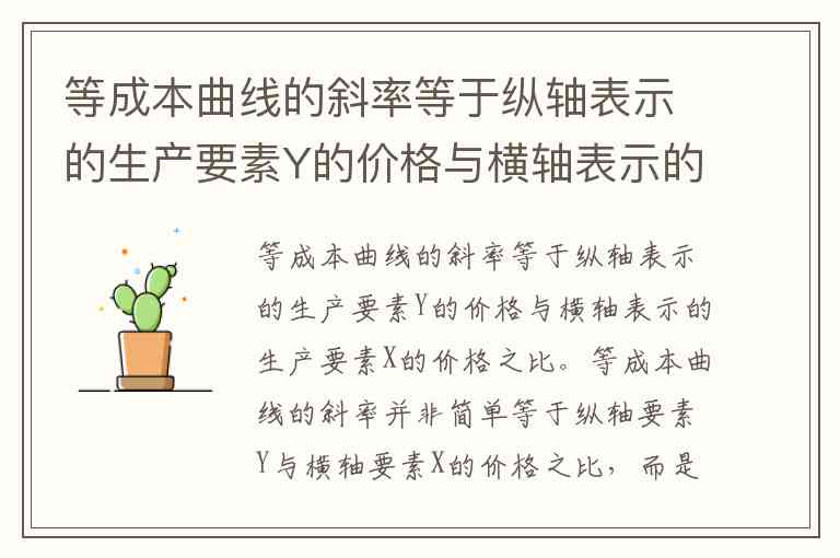 等成本曲线的斜率等于纵轴表示的生产要素Y的价格与横轴表示的生产要素X的价格之比。