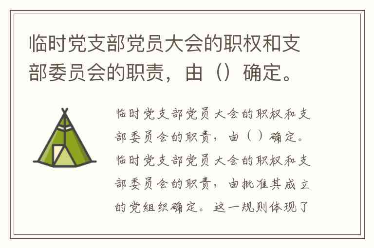 临时党支部党员大会的职权和支部委员会的职责,由()确定。