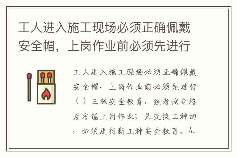 工人进入施工现场必须正确佩戴安全帽,上岗作业前必须先进行()三级安全教育,经考试合格后方能上岗作业;凡变换工种的,必须进行新工种安全教育。A.公司 B.项目部 C.班组 D.个人