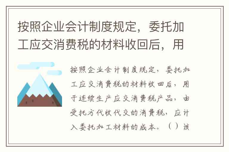 按照企业会计制度规定,委托加工应交消费税的材料收回后,用于连续生产应交消费税产品,由受托方代收代交的消费税,应计入委托加工材料的成本。()