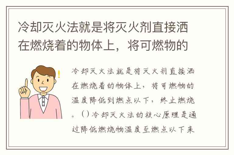 冷却灭火法就是将灭火剂直接洒在燃烧着的物体上,将可燃物的温度降低到燃点以下,终止燃烧。( )
