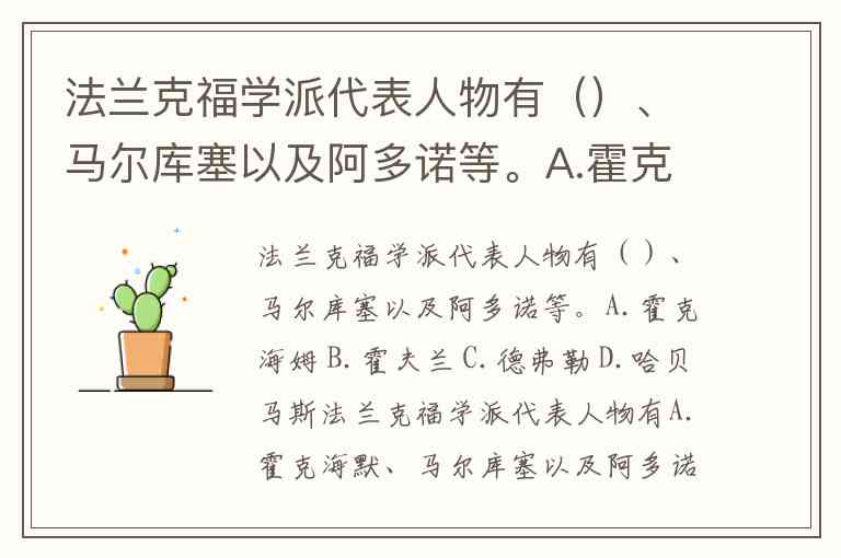 其他选项中,霍夫兰是美国传播学者,德弗勒提出了传播效果理论,均与法兰克福学派无关。这一选择既符合历史事实——霍克海默与阿多诺、马尔库塞共同构建了学派的批判理论框架,也反映了学术史上对“代表人物”的经典界定标准。