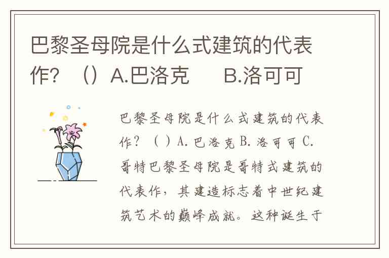 巴黎圣母院是什么式建筑的代表作?()A.巴洛克 B.洛可可 C.哥特
