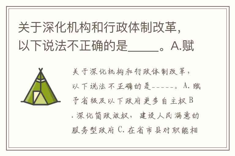 其他选项均符合改革精神:赋予省级及以下政府更多自主权,是为调动地方积极性并让中央集中精力谋全局;深化简政放权、建设服务型政府是转变职能的核心目标;统筹机构设置与权力配置则是优化治理体系的基础要求。改革实践中,上海等地通过“工作党委与政府部门合署”等模式稳步推进整合,但始终以“探索”为基调,保留制度弹性。