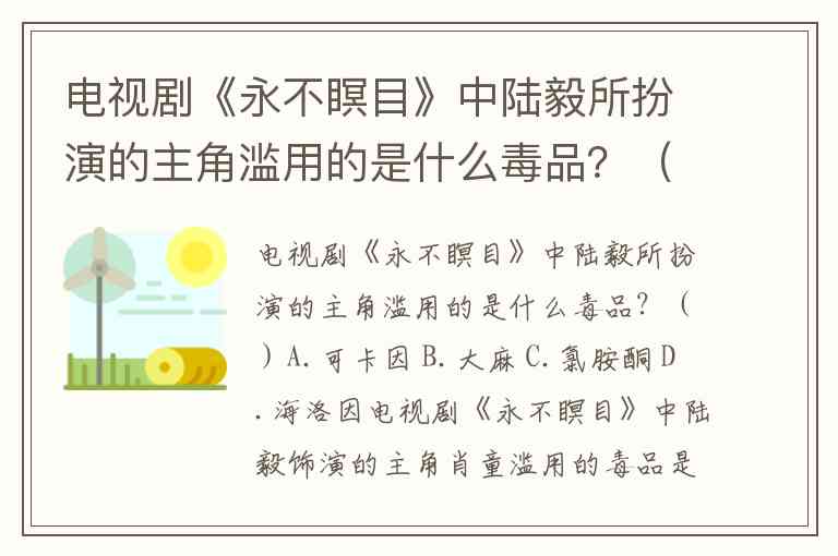 电视剧《永不瞑目》中陆毅所扮演的主角滥用的是什么毒品?()A.可卡因 B.大麻 C.氯胺酮 D.海洛因