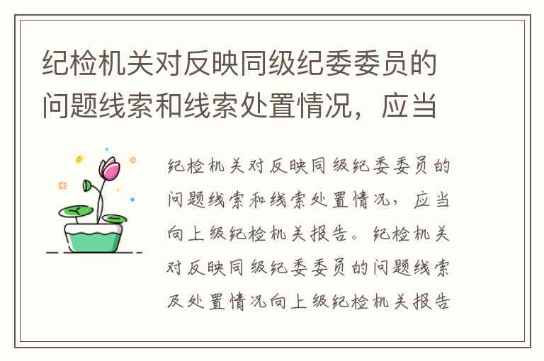 纪检机关对反映同级纪委委员的问题线索和线索处置情况,应当向上级纪检机关报告。