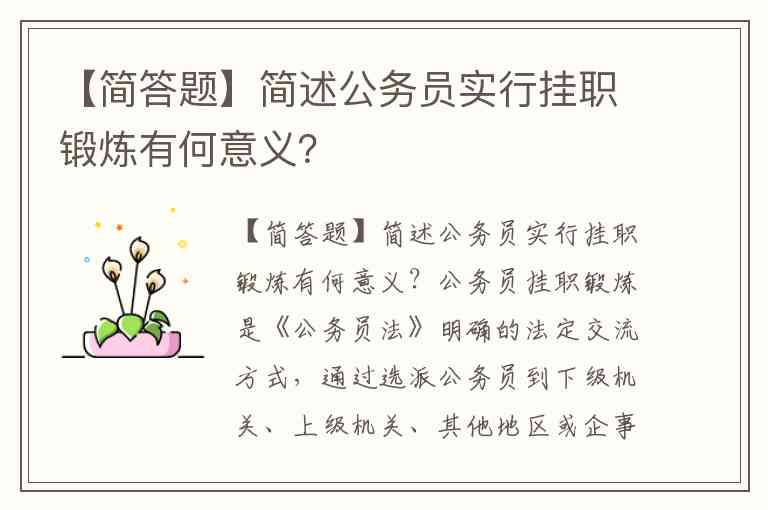 【简答题】简述公务员实行挂职锻炼有何意义?