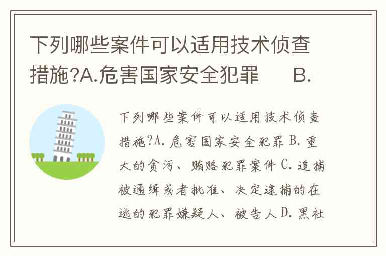 下列哪些案件可以适用技术侦查措施?A.危害国家安全犯罪 B.重大的贪污、贿赂犯罪案件 C.追捕被通缉或者批准、决定逮捕的在逃的犯罪嫌疑人、被告人 D.黑社会性质的组织犯罪
