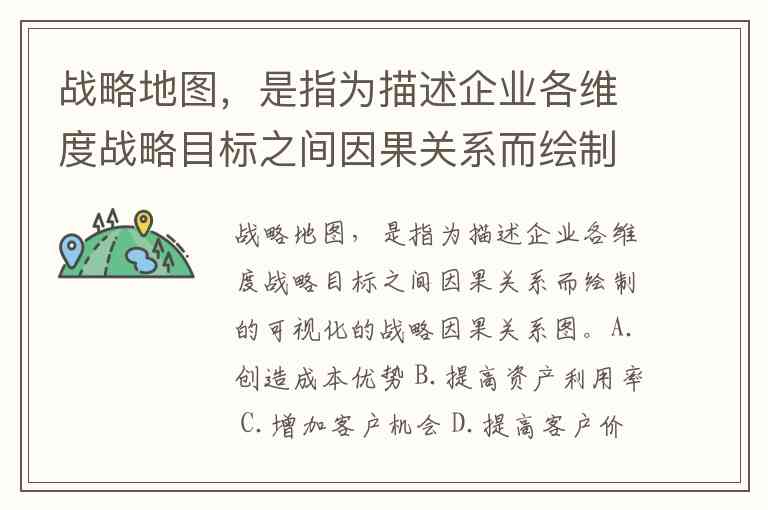 战略地图,是指为描述企业各维度战略目标之间因果关系而绘制的可视化的战略因果关系图。A.创造成本优势 B.提高资产利用率 C.增加客户机会 D.提高客户价值