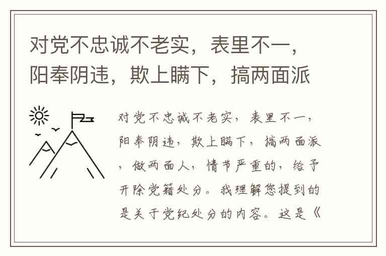 对党不忠诚不老实,表里不一,阳奉阴违,欺上瞒下,搞两面派,做两面人,情节严重的,给予开除党籍处分。
