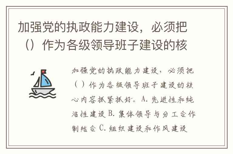加强党的执政能力建设,必须把()作为各级领导班子建设的核心内容抓紧抓好。A.先进性和纯洁性建设 B.集体领导与分工合作制结合 C.组织建设和作风建设 D.提高领导水平和执政能力