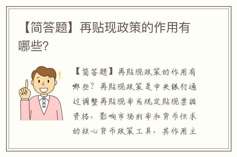 【简答题】再贴现政策的作用有哪些?