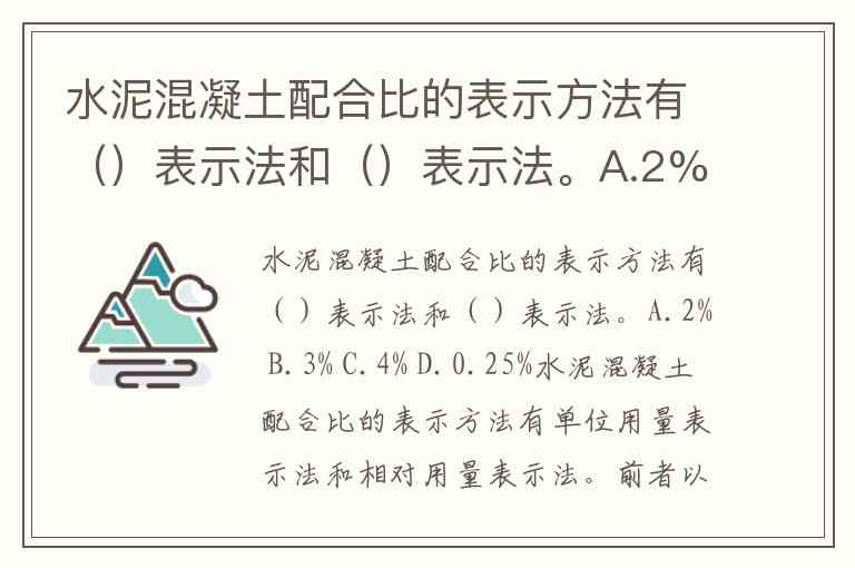 水泥混凝土配合比的表示方法有()表示法和()表示法。A.2% B.3% C.4% D.0.25%