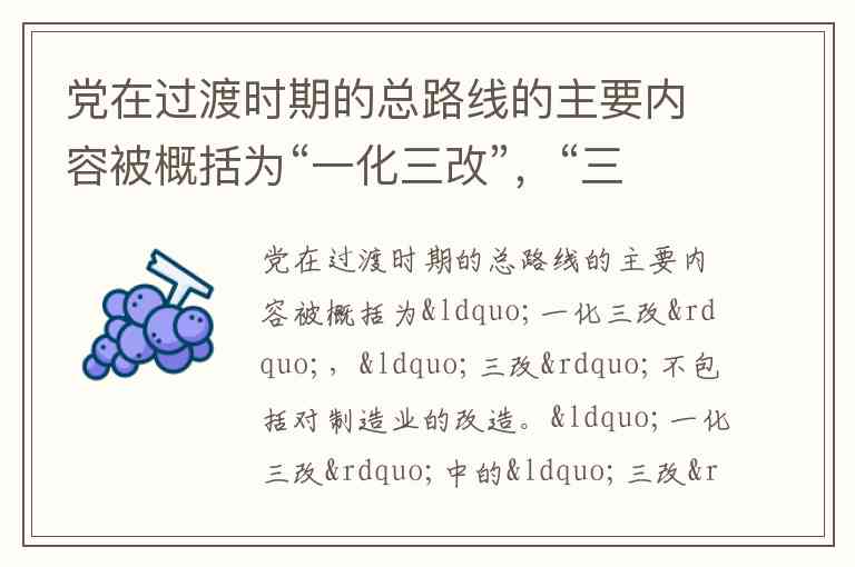 党在过渡时期的总路线的主要内容被概括为“一化三改”,“三改”不包括对制造业的改造。