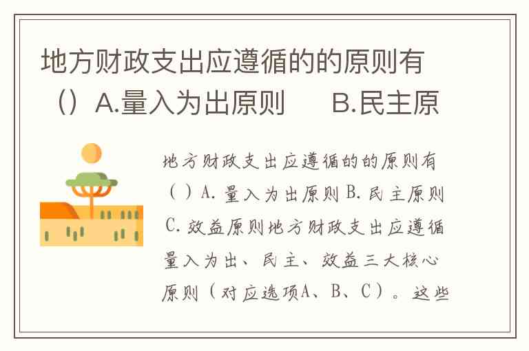 地方财政支出应遵循的的原则有()A.量入为出原则 B.民主原则 C.效益原则