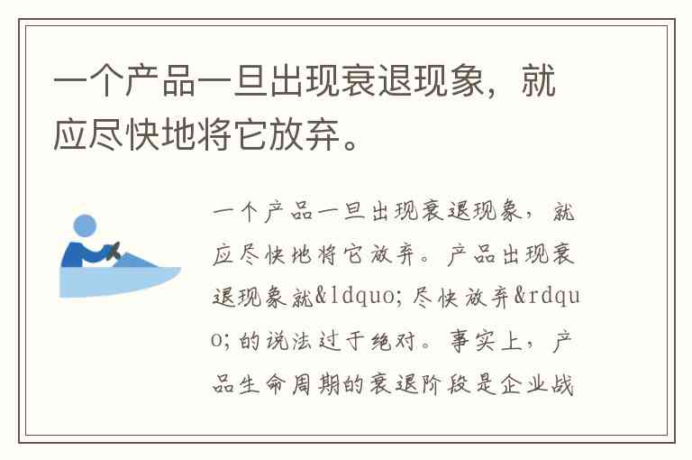 一个产品一旦出现衰退现象,就应尽快地将它放弃。