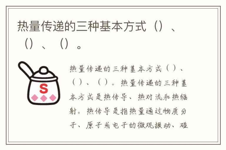 热量传递的三种基本方式是热传导、热对流和热辐射。