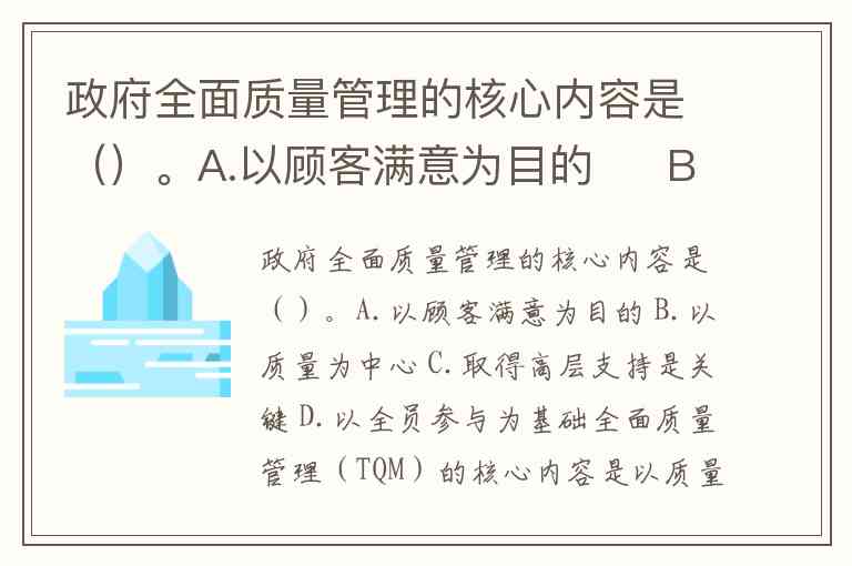 政府全面质量管理的核心内容是()。A.以顾客满意为目的 B.以质量为中心 C.取得高层支持是关键 D.以全员参与为基础