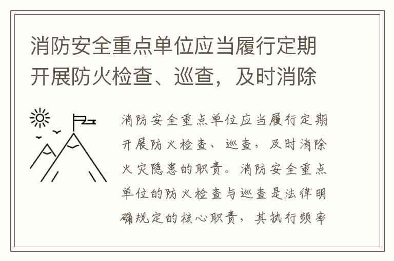 消防安全重点单位应当履行定期开展防火检查、巡查,及时消除火灾隐患的职责。