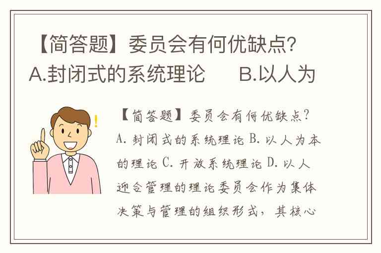 【简答题】委员会有何优缺点?A.封闭式的系统理论 B.以人为本的理论 C.开放系统理论 D.以人迎合管理的理论