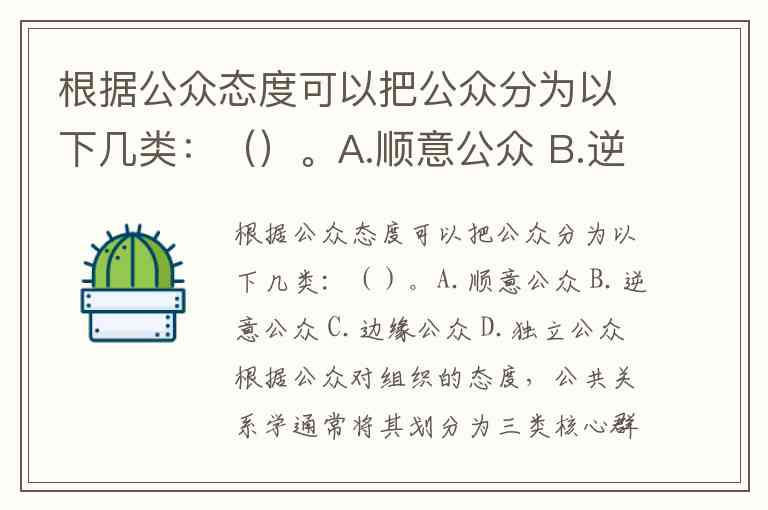 根据公众态度可以把公众分为以下几类:()。A.顺意公众 B.逆意公众 C.边缘公众 D.独立公众